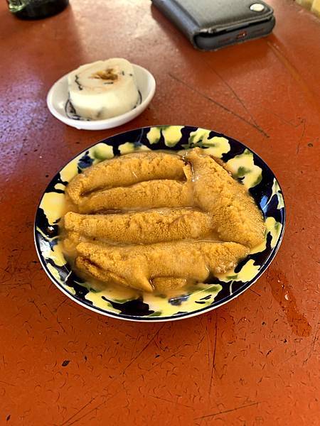 昨天的同一家店老闆娘在,幫我們炒了飯。小孩也不是很賞臉,倒是對於我覺得不是很好吃的冰品賞臉。老闆娘的姐姐說是村長,帶了兩個海膽過來兜售,老闆娘一直勸說現在海膽很難找了等等,我們自己也是抱著嚐鮮的心情答應了這兩個海膽500元。