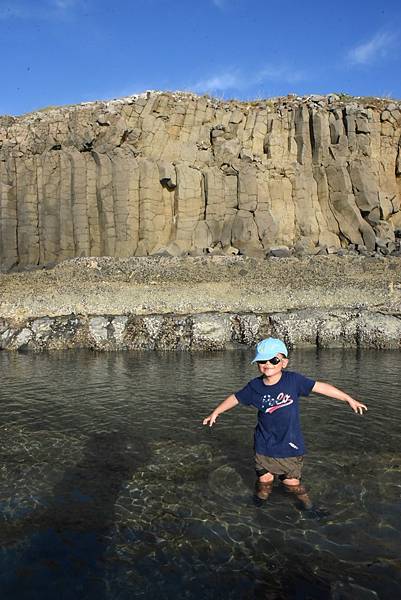 這個景點不算難找,但是停車位少,我們停在這片岩壁的上面,再走下去;據說這是以前舊的九孔養殖池,現已廢棄,如同棋盤般的水泥道及後方的玄武岩,讓人們得以站在水面上拍照。