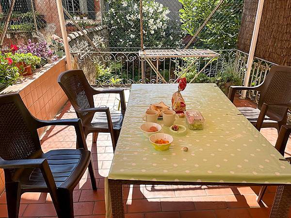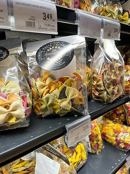 今天早上,是莎莎前去超市買早餐,她出門後沒多久還打來問我超市在那裡,雖然已經再三跟她影藏在古厝之內,但是她還是找不到。早餐買了一些加熱熟食以及麵包來餵鴿子,華麗的天花板還是驚呆了莎莎的下巴。超市內有各種義大利麵,一直在思考著買這個回台灣是不是很佔空間。