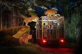 在今天cehck in的時候,我們就已經報名了當天晚上的night safari。跟新加坡的夜間動物園同樣是Night Safari,這個動物園的噱頭是可以被關進一個車籠裡,然後看著飼養員餵著肉食性動物。