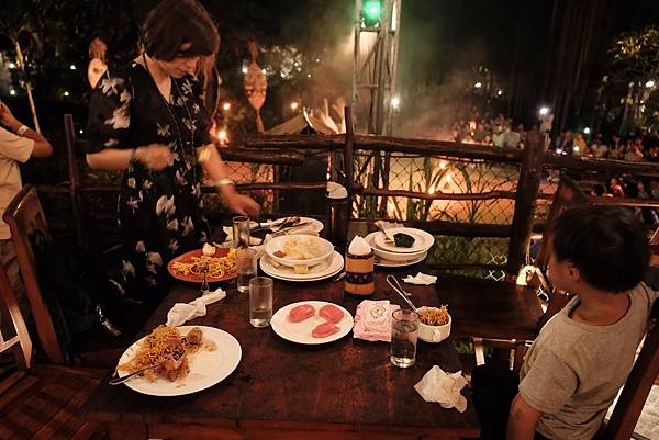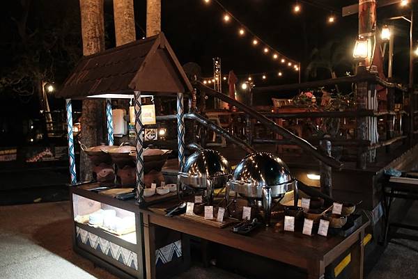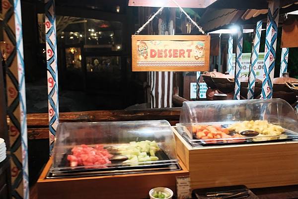 我們的位子剛好在櫃檯廣場邊,而七點半的火舞秀剛好就在我們旁邊。我們有點像是邊吃飯邊欣賞表演的感覺。